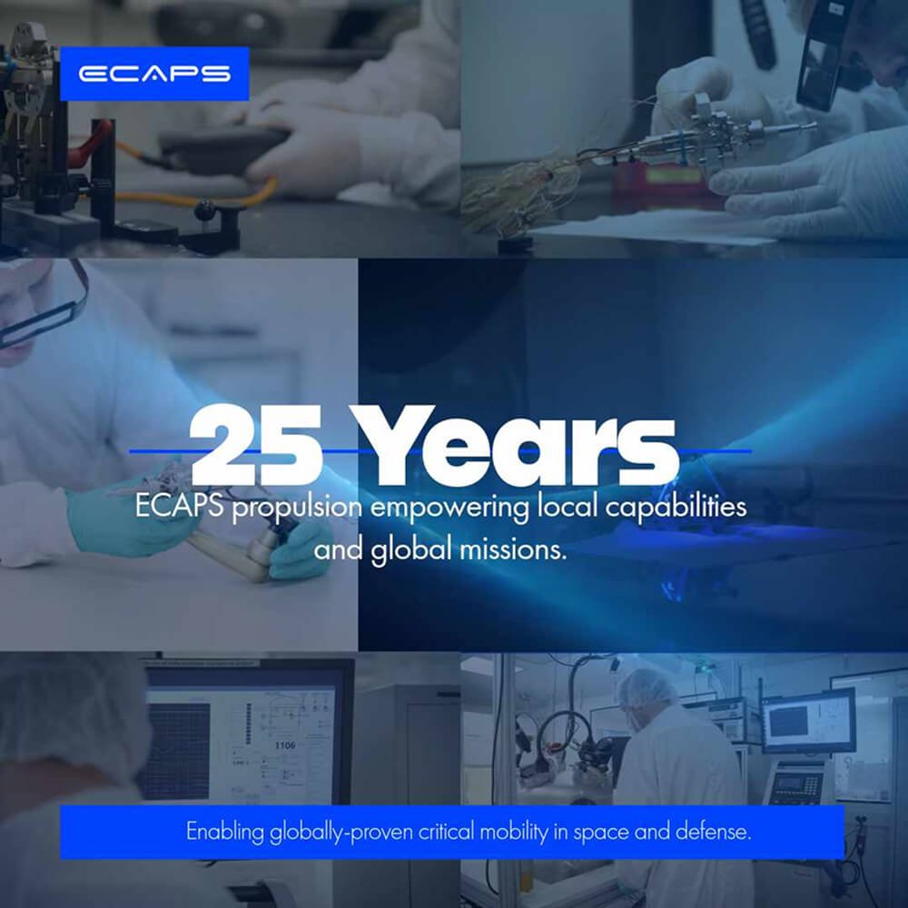 ECAPS AB, Sweden’s leading propulsion technology provider, celebrates its 25th anniversary, marking a quarter-century of innovation in spacecraft and defense mobility.